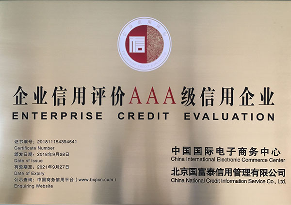 企業(yè)信用評級AAA級信用企業(yè)